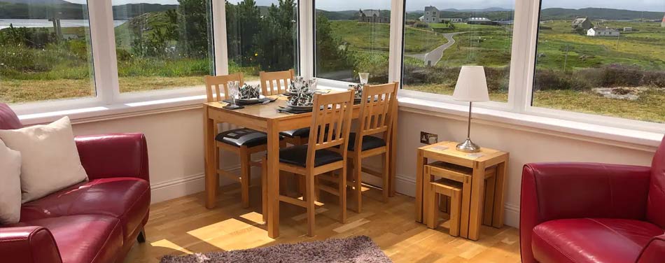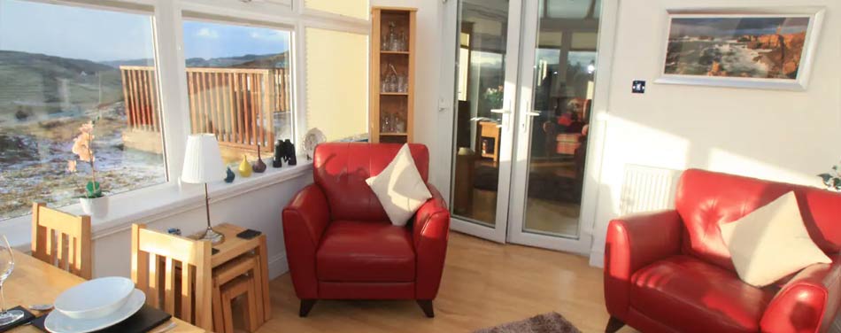 Clisham lounge – sun-room, conservatory, flooded with light, endowed with amazing views and equipped besides (for your comfort) with idiot-proof blinds is a zone of tranquility and piece.
